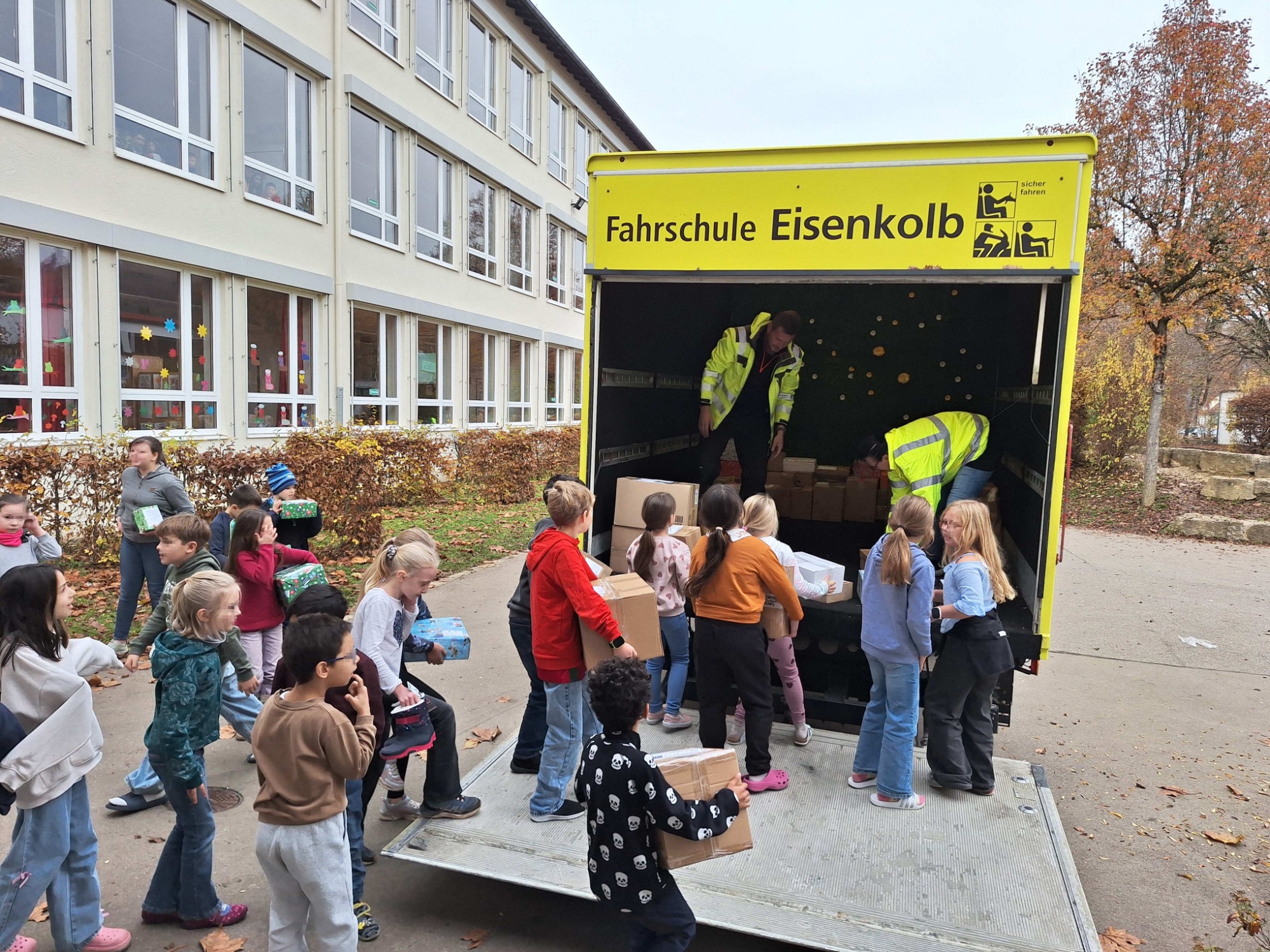 Am 10. November 2023 durften die Schüler der Hirscheckschule in Schnaitheim ihre gesammelten Pakete dem Nikolauskonvoi und seinen Nikoläusen vom Verein Hinsehen und Helfen e.V. übergeben. Welchen Weg die Weihnachtspäckchen nehmen, kann auf den Seitern des Vereins mitverfolgt werden.
