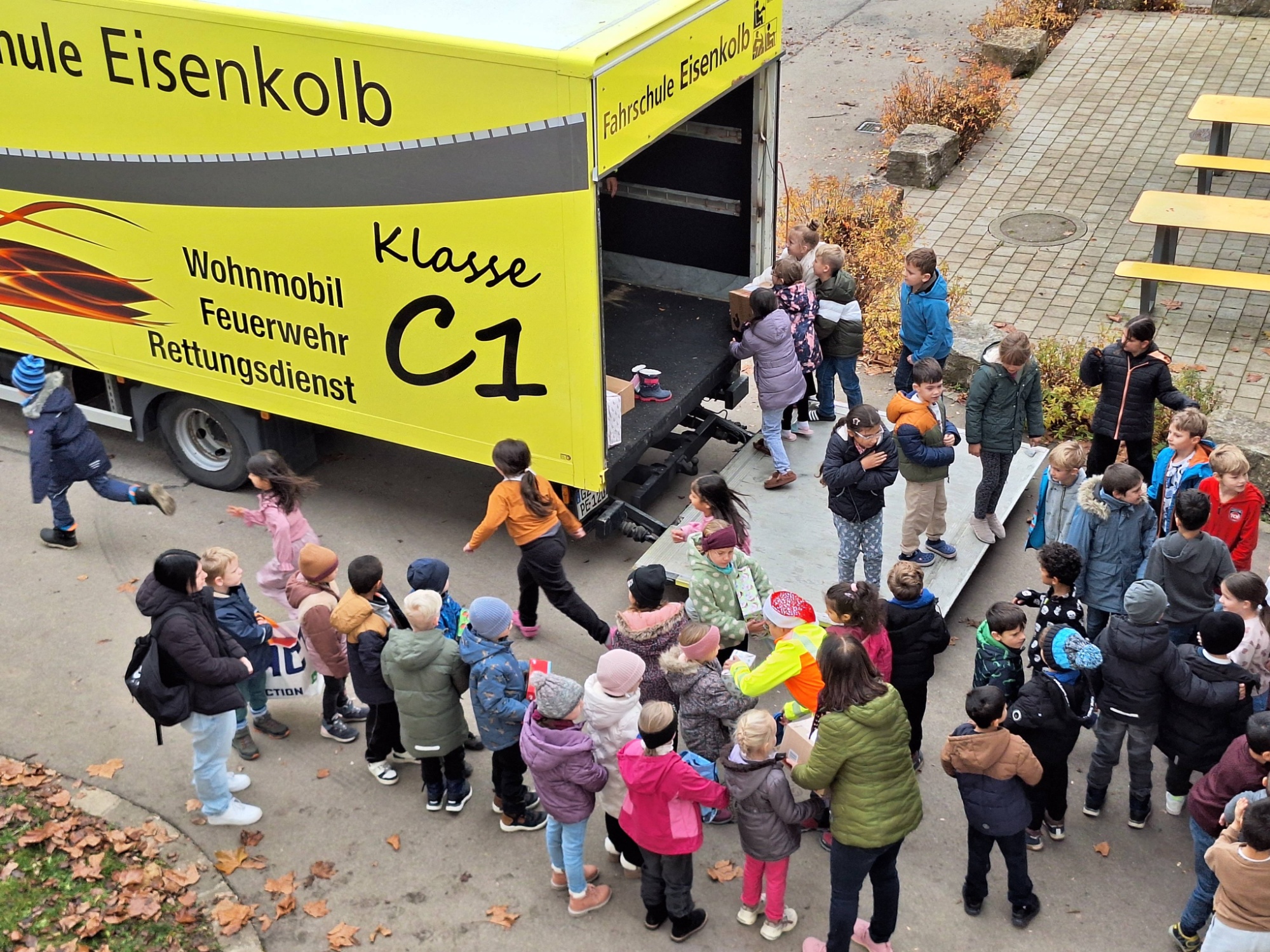 Am 11. November 2022 freuten sich die Hirscheckschüler wieder, als der Nikolauskonvoi in den Pausenhof der Hirscheckschule einfuhr. Stolz überreichten sie ihre vorab gesammelten Geschenke und Überlebenspakete den freundlichen Helfern und Nikoläusen vom Verein Hinsehen und Helfen e.V..